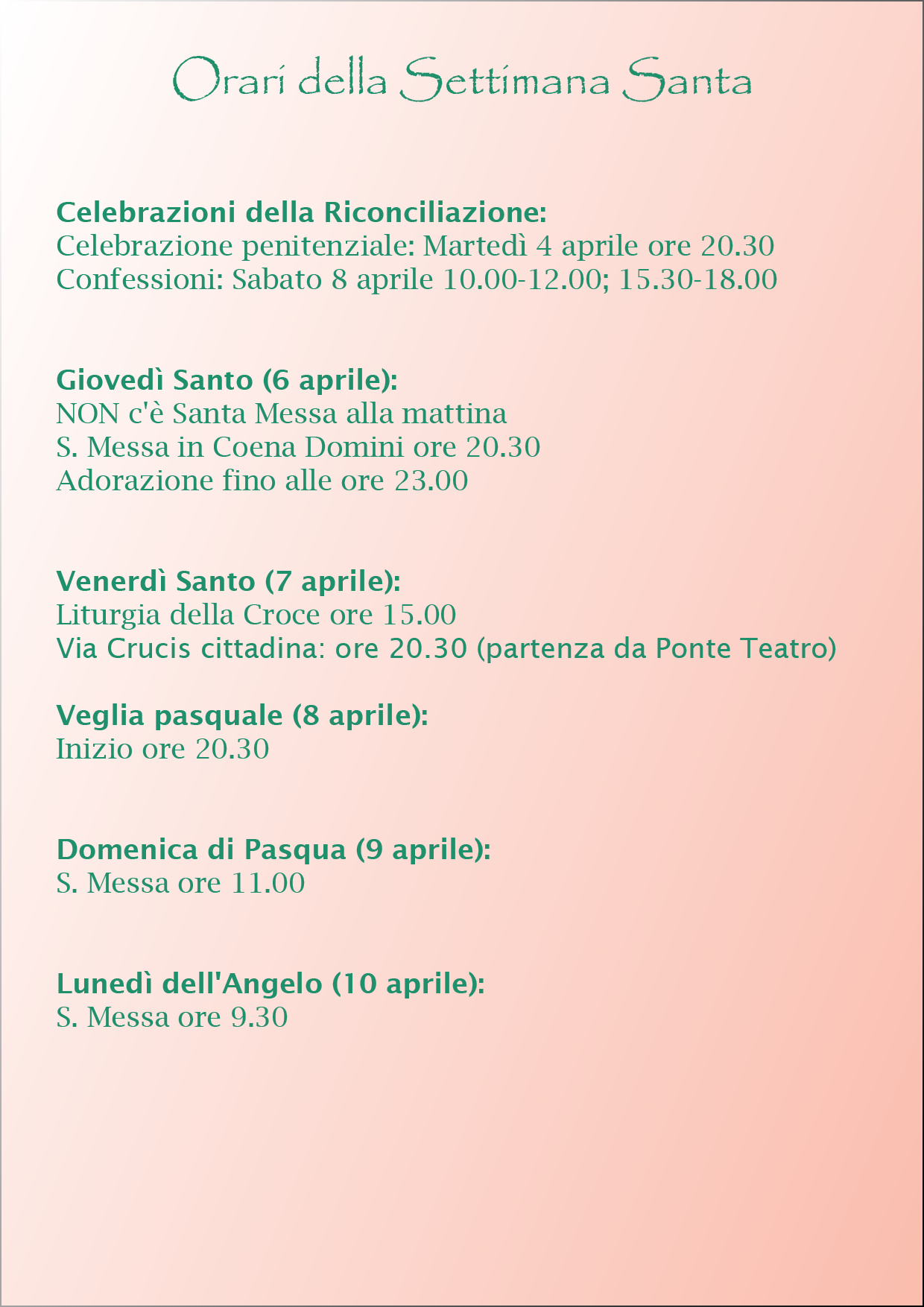 Qui trovate gli orari delle celebrazioni della Settimana Santa: